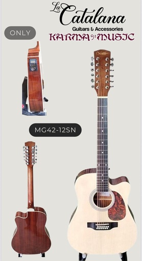 GUITARRA ELECTROACUSTICA DOCEAVA (DOCEROLA) DE 12 CUERDAS COLOR NATURAL MUSIC PLACE CATALANA MG42-12SN